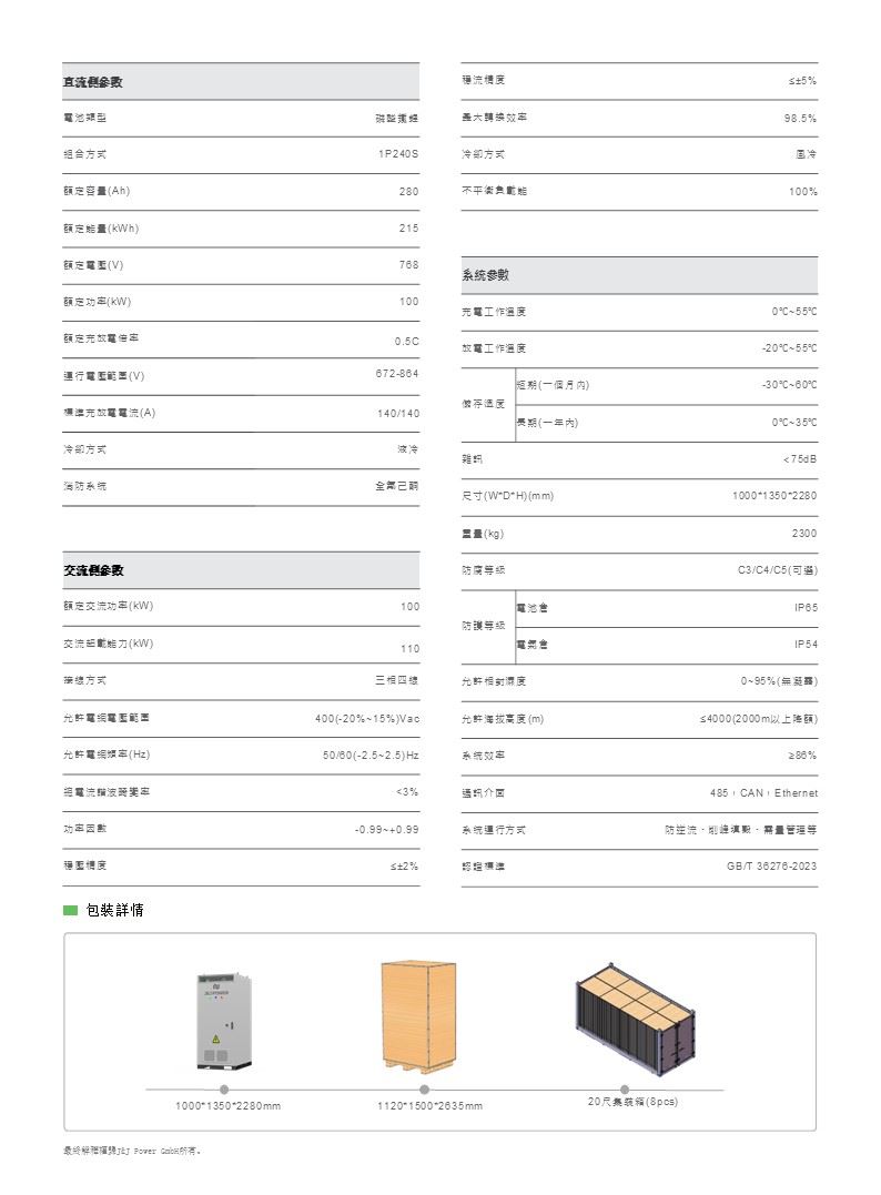 百樂千翔工商用儲能系統 125kW / 261kWh儲能一體櫃